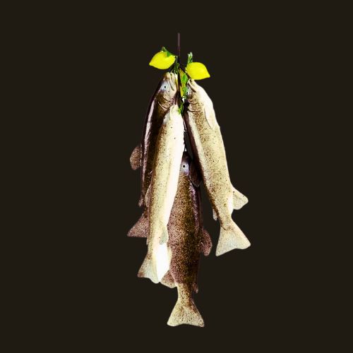 Deko-Forellenstrang, mit 4 Forellen, ca. 35 cm lang, aus Kunststoff