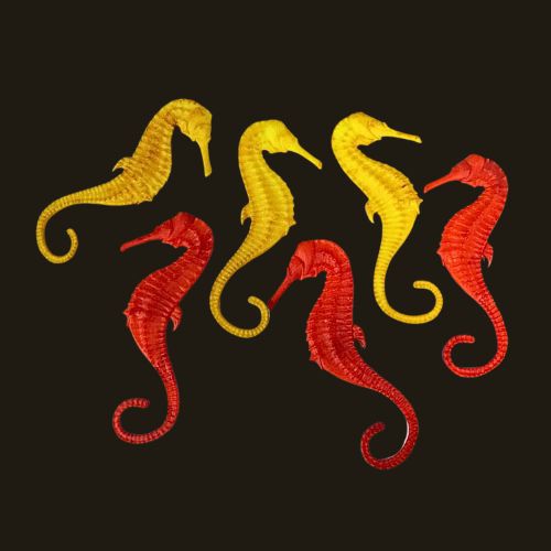 Deko-Seepferdchen, 3 Stück rot, 3 Stück orange, ca. 19 cm lang, Pack à 6 Stück