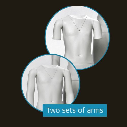 Das technische Design ermöglicht einfaches an- und ausziehen der Figuren. Verlängerte Arme und Beine ermöglichen die Abbildung von allen Kleidungslängen, ohne dass man mit „umkrempeln“ die Darstellung verfälscht. Die Oberfläche besteht aus einem matten, hellen Grauton, damit keine Lichtreflexionen entstehen können und transparente Kleidung farbecht dargestellt werden kann.
