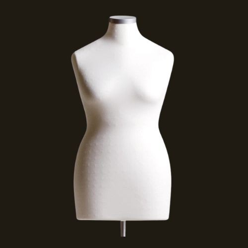Lange Plus-Size Damenbüste von Darrol aus Styrofoam mit Stoffüberzug in der Farbe Natural.