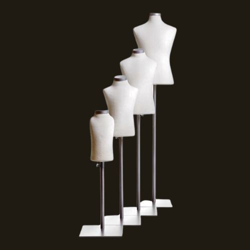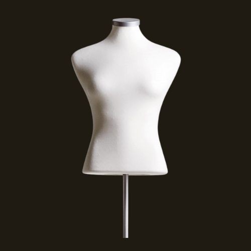 Kurze Damenbüste der Marke Darrol aus Styrofoam mit Stoffbezug in der Farbe Natural.