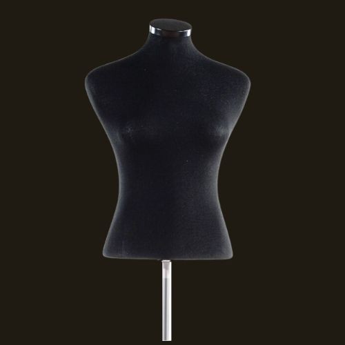 Schmal geschnittene, kurze Damenbüste der Marke Darrol aus Styrofoam mit schwarzem Stoffbezug (Ohne Ständer).