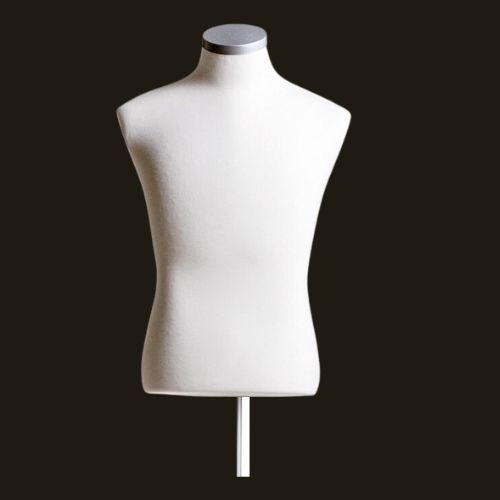 Schmal geschnittene, kurze Damenbüste der Marke Darrol aus Styrofoam mit hellem Stoffbezug (Ohne Ständer).