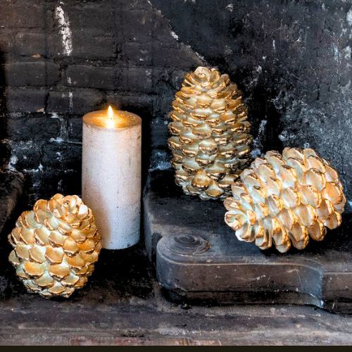 LED Kerzen / Tannzapfen gold