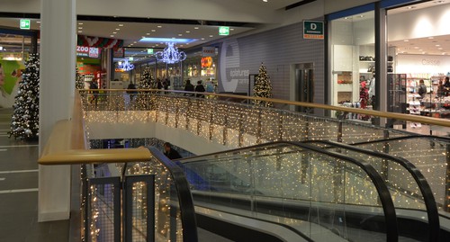 Künstliche Weihnachtsbäume (Luvi) dekoriert mit LED warmweissen Lichterketten und Kunststoff