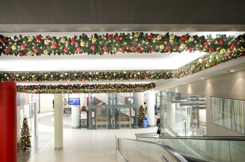 Weihnachtsbäume, Girlanden und Kränze