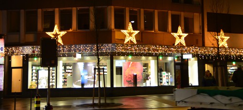 - auf dem Vordach sind 3D Lichtsterne befestigt